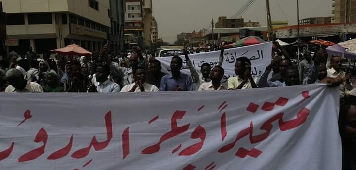 ورغم الطوق الامني المفروط وسط العاصمة الخرطوم سير صحفيون موكب ينادي برحيل النظام الحاكم، دعت له شبكة الصحفيين السودانيين أحد مكوني تجمع المهنيين السودانين .