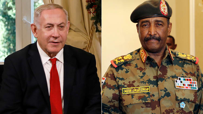 لقاء مفاجئ جمع برئيس مجلس السيادة الانتقالي في السودان الفريق أول عبدالفتاح البُرهان،برئيس الوزراء الإسرائيلي بنيامين نتياهو بدولة يوغندا،ناقش الطرفين إمكانية تطبيع العلاقة فيما بينهم،رغم الإعلان الرسمي لهذا اللقاء من الجانب الإسرائيلي الا أن الحكومة الإنتقالية،إكتفت بتصريح صادر من الناطق الرسمي بإسم الحكومة الانتقالية.