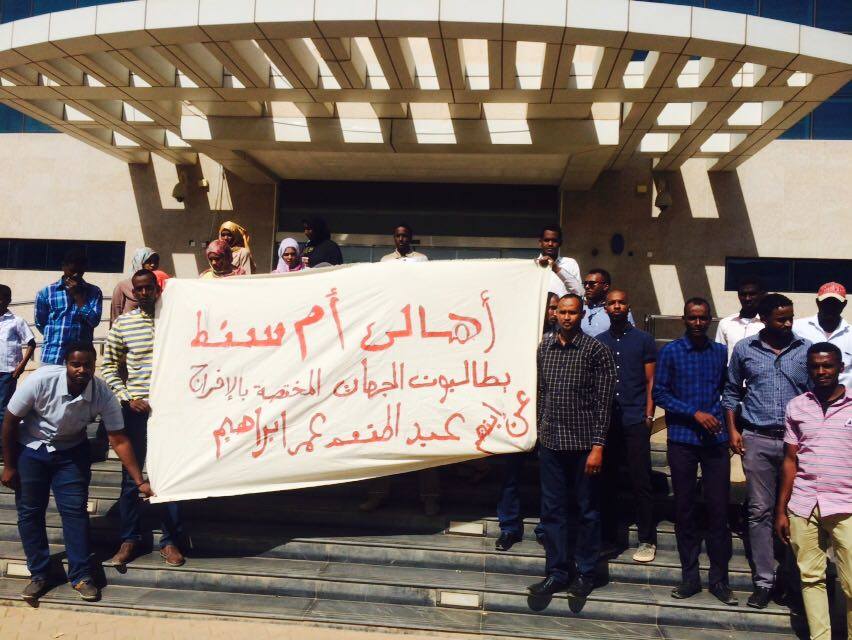 وسلم المحتجين مذكرة للجهاز مطالبين بالإفراج الفورى عن عبدالمنعم عمر إبراهيم ابن المنطقة المعتقل لدى جهاز الأمن ورفعوا لافتات تطالب بالإفراج عنه.